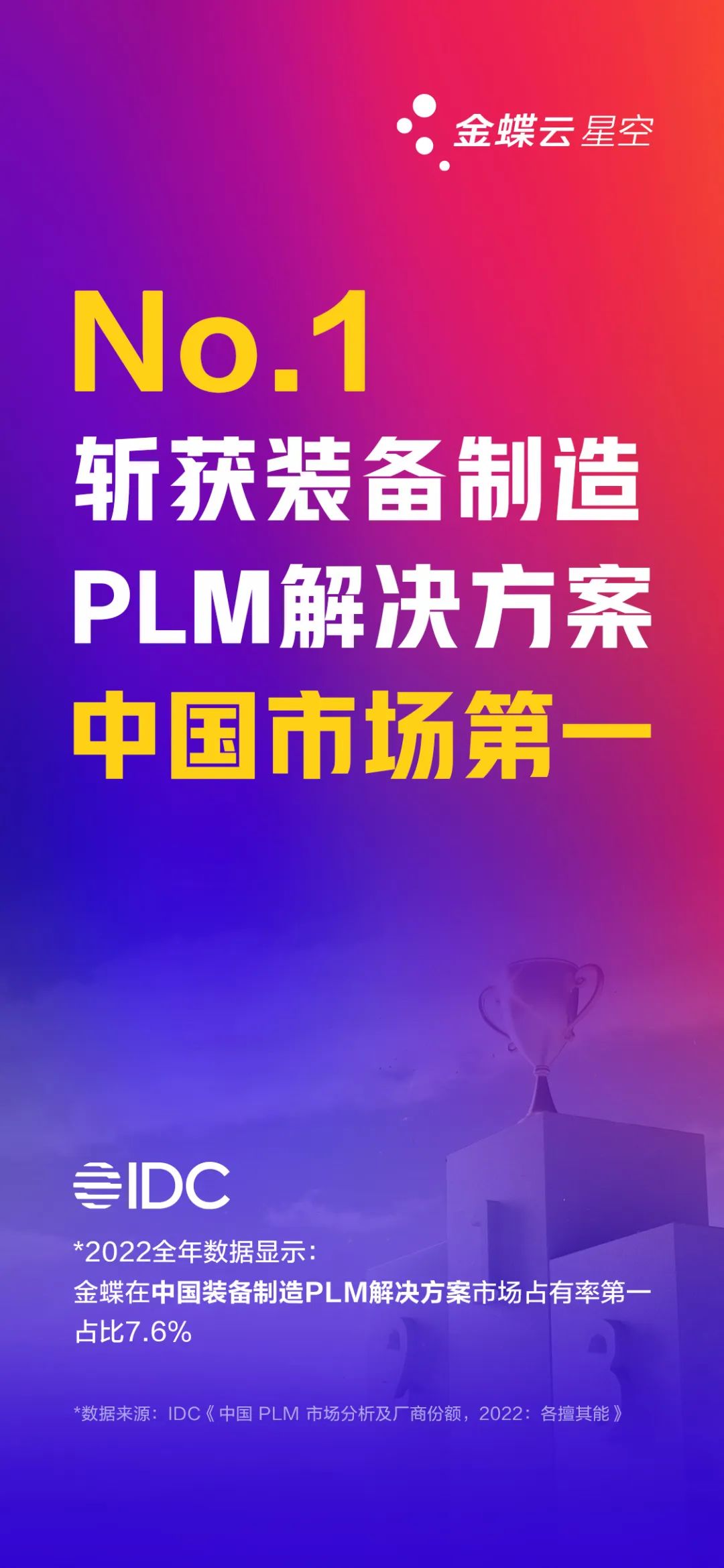 近日,全球權(quán)威信息技術(shù)研究和顧問公司IDC發(fā)布了《中國 PLM 市場分析及廠商份額,2022:各擅其能》報告,金蝶以38.0%的市場占有率雄踞中國SaaS PLM軟件子市場廠商份額市場第一;細(xì)分行業(yè)中,裝備制造PLM解決方案市場廠商份額市場第一;另外,高科技電子及計算機通信PLM解決方案市場、整車及汽車零部件PLM解決方案市場廠商份額都在行業(yè)內(nèi)遙遙領(lǐng)先!